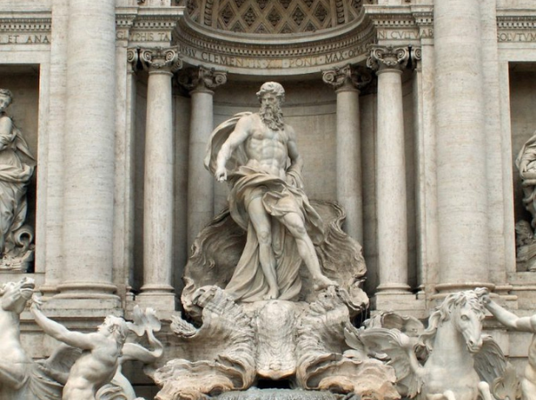 Der Trevi-Brunnen ist vermutlich einer der berühmtesten Brunnen der Welt, mit Sicherheit aber der populärste in Rom. Im 18. Jahrhundert nach einem Entwurf von Nicola Salvi erbaut, ist der Brunnen im klassizistischen Stil gehalten und beeindruckt mit seinen unzähligen bildhauerischen Details aus einer maritimen Szenerie auf 50m Breite.