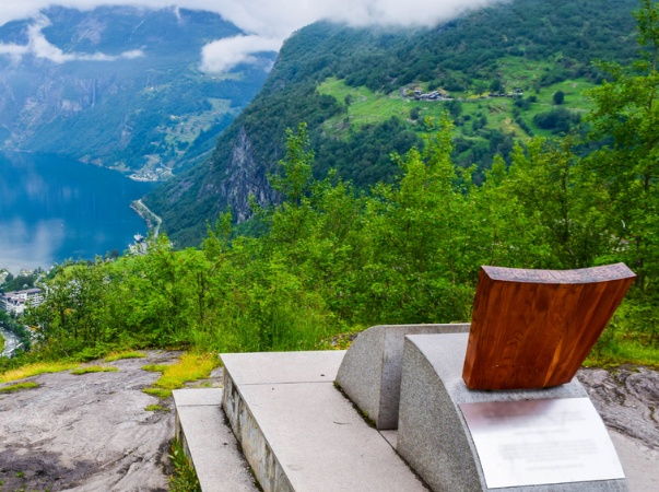 Flydalsjuvet ist ebenfalls einer der bekannten Aussichtspunkte mit direktem Blick auf den Geirangerfjord. Er befindet sich nur etwa 4 Kilometer von Geiranger entfernt und ist leicht mit dem Auto, dem Fahrrad oder sogar zu Fuß zu erreichen. Der Aussichtspunkt ist bekannt für seine Felsen, die scheinbar über den Abgrund hinausragen, und stellt einen beliebten Fotospot dar, von dem aus man die Schönheit des UNESCO-Weltnaturerbes Geirangerfjord festhalten kann. Vor Ort gibt es zudem eine Besonderheit: Auf der unteren der beiden Ebenen befindet sich eine Art Sessel aus Metall und Holz, der „Fjordsetet“. Die interessante Installation, von der aus Touristen die atemberaubende Umgebung bewundern können, wurde im Jahr 2003 von Königin Sonja enthüllt.