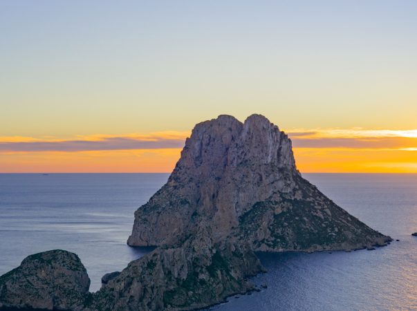 Die unbewohnte Felsinsel Es Vedrà ist nur ca. 2 Kilometer von der Westküste von Ibiza entfernt. Lediglich Ziegen lebten auf der 380 Meter hohen Insel, die aber aufgrund der Gefährdung der Vegetation verlegt worden sind. Mythen besagen, dass hier UFOs gesichtet werden können, Kompasse nicht funktionieren oder dass Es Vedrà die Spitze von Atlantis sei.