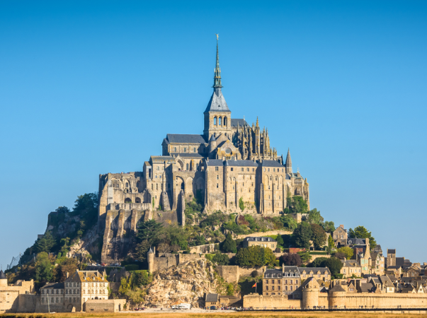 Der Klosterberg Mont-Saint-Michel gehört zu den meistbesuchten Sehenswürdigkeiten Frankreichs. Und das nicht ohne Grund: Besuchern wird ein spektakuläres Panorama auf die Bucht und das Meer geboten – ein unvergesslicher Anblick. Bereits seit 1979 gehört der Mont-Saint-Michel zum UNSECO Kulturerbe. Ein Renaturierungsprojekt sorgte zuletzt dafür, dass dieses Highlight der Normandie aufgrund der starken Gezeiten an mehreren Tagen im Jahr wieder zur Insel wird. Besonders hervorzuheben ist die Abtei, die sich durch ihren normannischen Baustil auszeichnet und eine Aussichtsplattform mit Panoramablick über die Bucht der Normandie bietet. Das Dorf selbst zeichnet sich durch seine mittelalterliche Architektur mit engen, steilen Gassen und Steinhäusern aus.