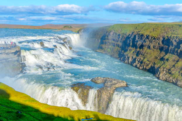 Spannend ist außerdem der Gullfoss, der berühmteste Wasserfall Islands. Er gehört zu dem Flusses Hvítá und erzeugt häufig Regenbögen innerhalb seiner Felsschlucht. Der atemberaubende Gullfoss stürzt über 30 Meter in die Tiefe und bildet eine beeindruckende Kulisse. Im Winter hat er die Optik einer Wand aus purem Eis.