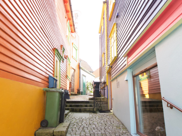 Der letzte Stopp dieser Tour ist die Øvre Holmegate, auch bekannt als „die Farbige Straße“. Wie der Name schon verrät, ist die Straße durch ihre farbenfrohen, kunstvollen Fassaden bekannt. Aber nicht nur von außen sind die Gebäude sehenswert: Hier gibt es viele kleine Läden und Boutiquen, die zum Shoppen einladen.