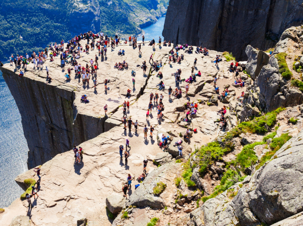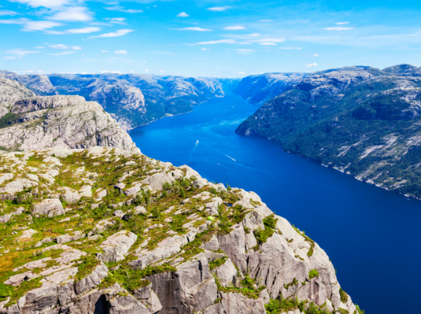 Ein besonderes Highlight, das direkt am Fjord liegt, ist der weltberühmte Preikestolen. Hierbei handelt es sich um eine natürliche Felsplattform, welche sich in einer Höhe von 604 Metern befindet. Die atemberaubende Plattform ist nicht umsonst eines der beliebtesten Fotomotive. Schon vom weiten beeindruckt ihr Anblick. Zu erreichen ist dieses einzigartige Naturhighlight durch eine mehrstündige Wanderung, wobei es alternativ auch von einem Ausflugsboot aus bestaunt werden kann.