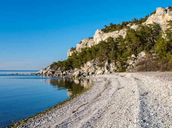 Genießen Sie einen tollen Blick auf die Westküste von Gotland und das offene Meer. Rund sieben Kilometer südlich von Visby liegt die Kliffspitze von Högklint, die zu den spektakulärsten Küstenabschnitten der Insel gehört. Sie ist auf Riffkalkstein gebaut, welcher von Schichten aus Kalkstein und Mergelschiefer unterlegt wird. So erhebt sich die Kliffspitze senkrecht auf eine Höhe von 46 Metern aus dem Meer empor. Gemeinsam mit seiner Umgebung bildet Högklingt seit Beginn des 20. Jahrhunderts ein Naturreservat. Es lohnt sich übrigens nicht nur tagsüber einen Ausflug in diese Region zu unternehmen, denn auf Gotland gibt es wohl kaum einen schöneren Ort, um den Sonnenuntergang über dem Meer zu genießen.